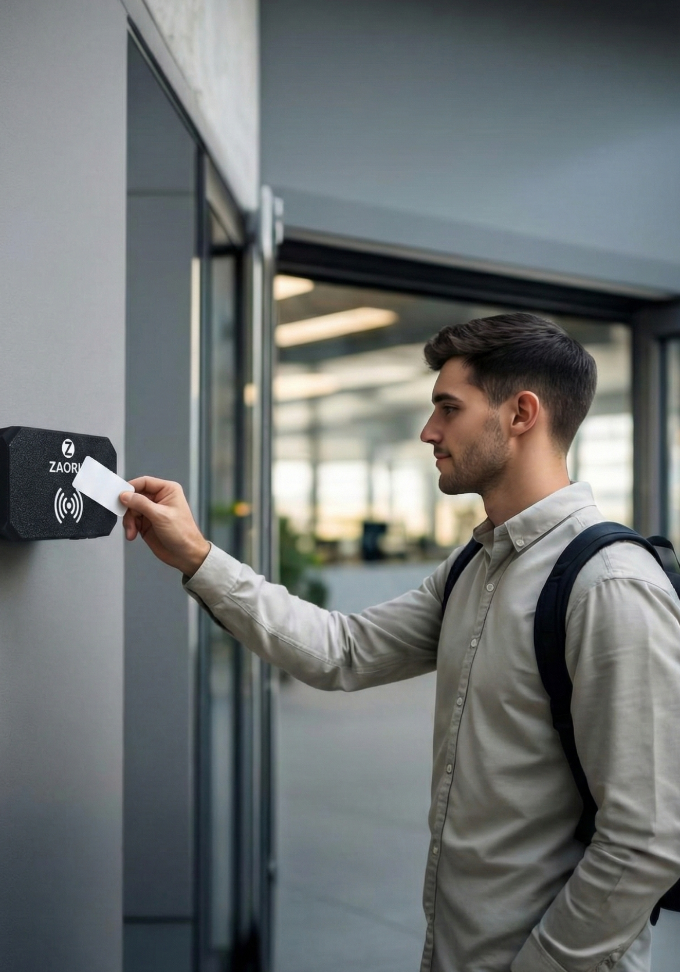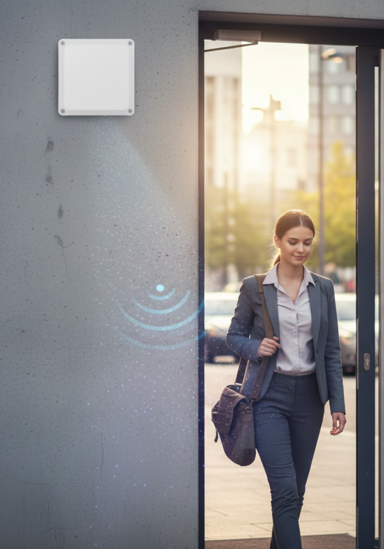 Olvídate del fichaje manual: nuestra antena RFID detecta a cada empleado al acercarse y registra su entrada y salida de forma automática. Sin botones, sin colas, sin errores.